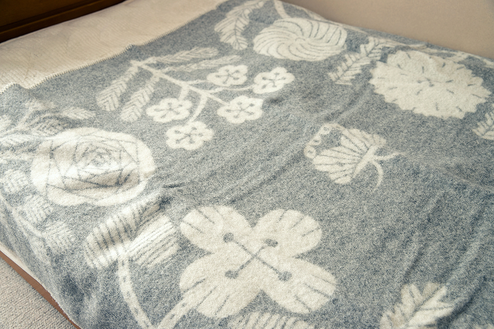 「野生の花」を意味するVILLIKUKKA (ヴィリクッカ)。 鹿児島睦さんが器に描くことの多い花柄をファブリック全体に織りで表現したブランケットです。130×180cmのたっぷりとしたサイズのブランケットはスローとしてベッドやソファにかけるとインテリアのアクセントになり、寒い季節も楽しく過ごすことができそうです。