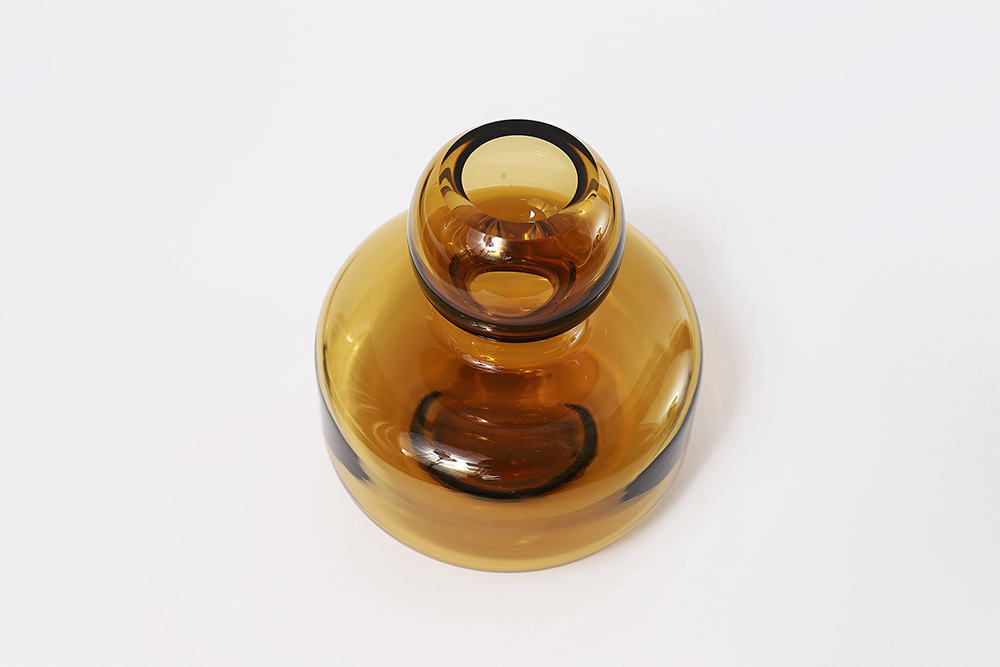 マリメッコらしいどこかポップで、ぽってりしたフォルムが可愛らしい花瓶です。ひとつひとつ手吹きで作られているので温かみがあります。小さいのに存在感のある、マリメッコならではのデザインです。柔らかく、透明感のある色味と独特なシルエットが、アートピースのようなベースです。