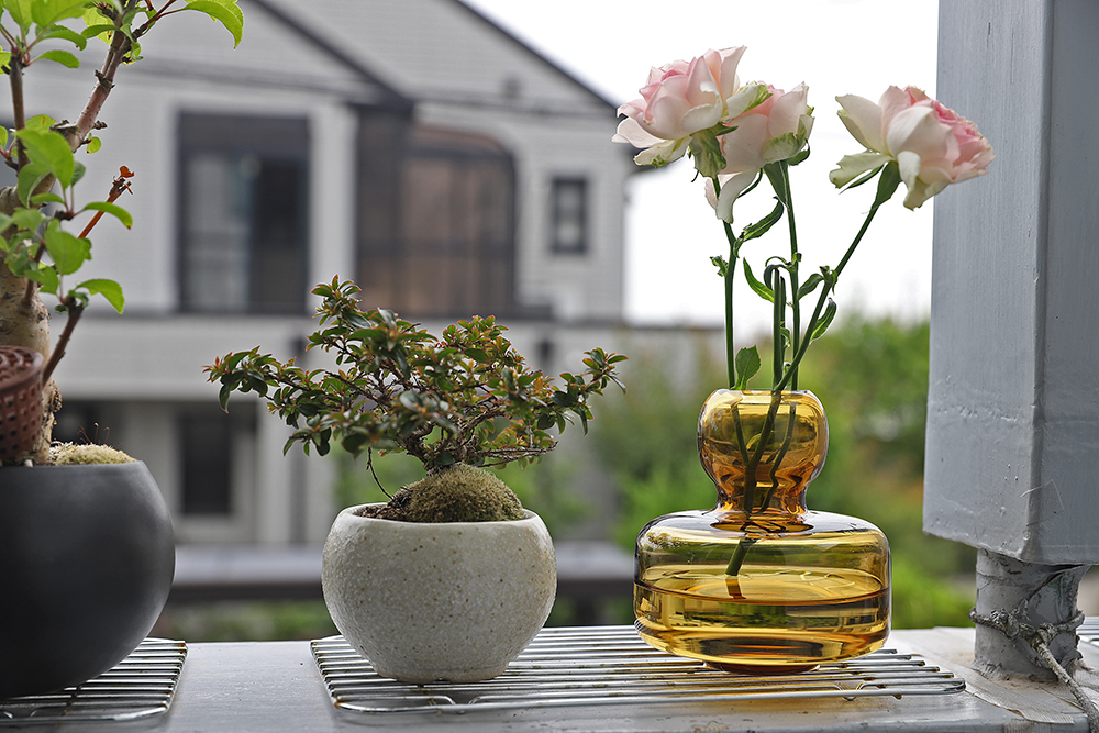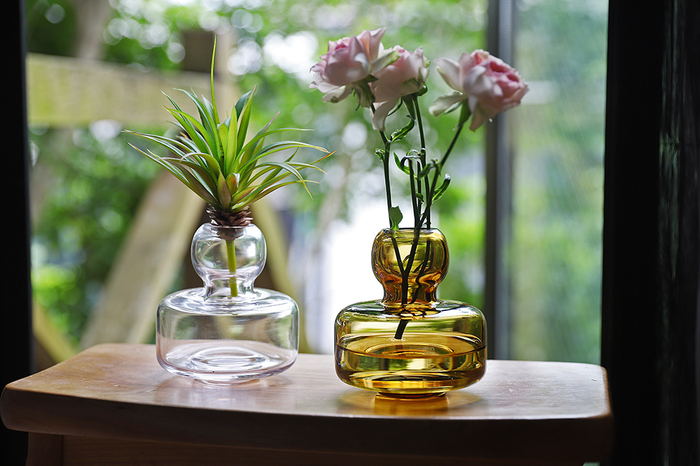 このフラワーベースの最大の特徴は、実際に花を挿した時で、花の持つ美しさを生かし、花とフラワーベースとの調和がとても良いです。 決して主張せずあくまでも花瓶としての役割を果たすためにデザインされています。