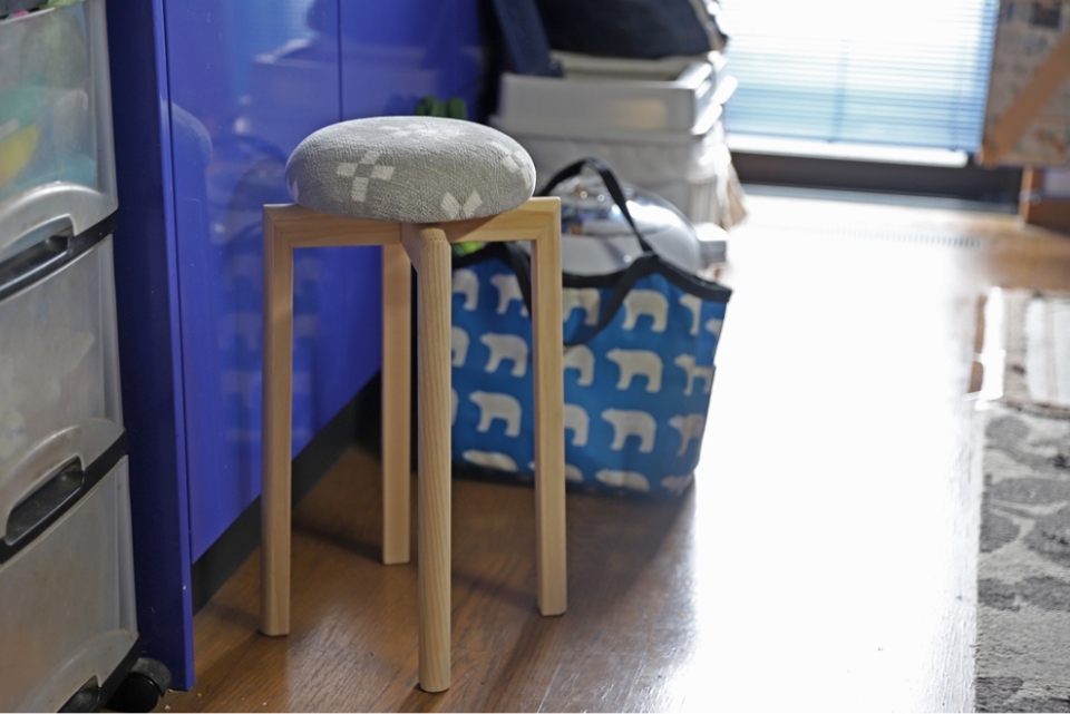 パーツ点数が少ないため、組立方法は非常に分かりやすいです。脚同士を重ねてその上に座面を乗せ、裏面からボルトで締めるだけです。