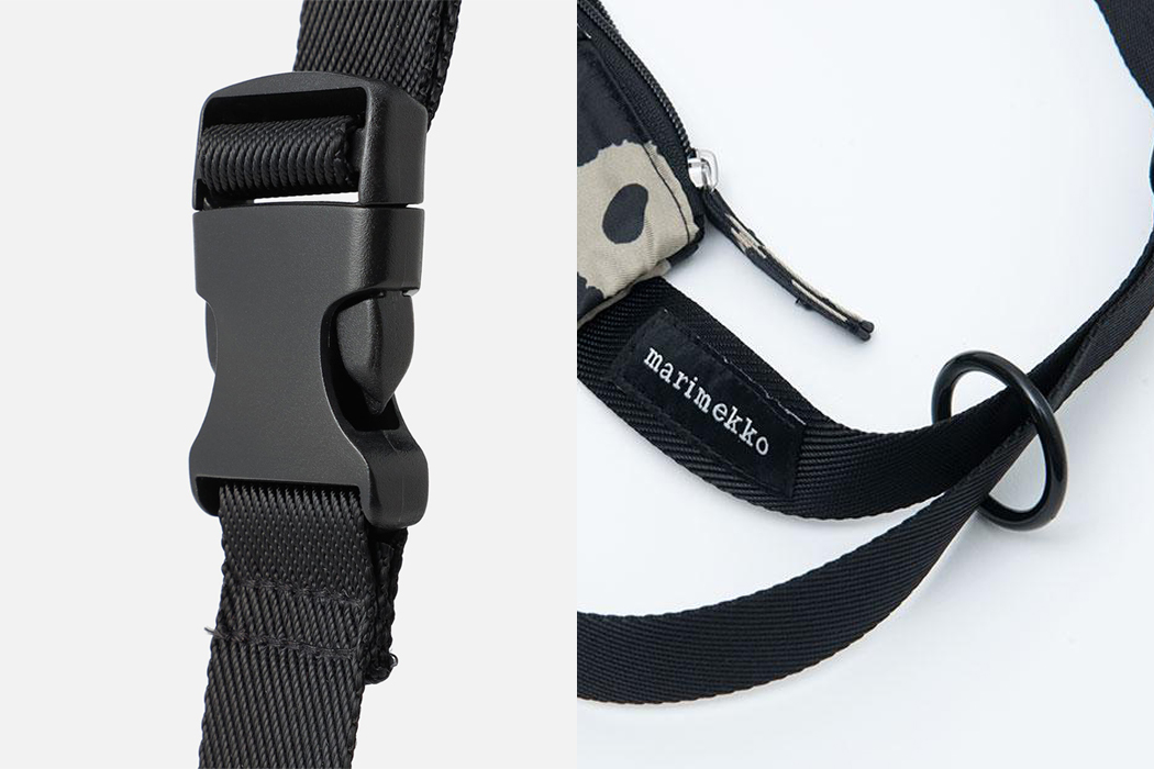 ショルダーストラップは調整ができるスリング式です。身長や体型を選ばずに使用できることが嬉しいです。品の良いブラックのコットン素材が使われています。